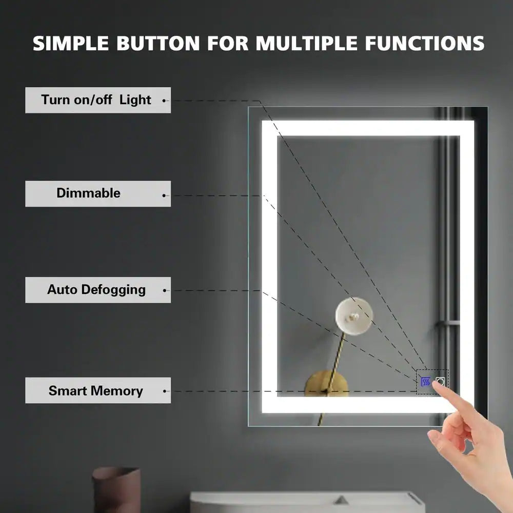 24 in. W x 32 in. H Frameless Anti-Fog LED Bathroom Vanity Mirror Front Light