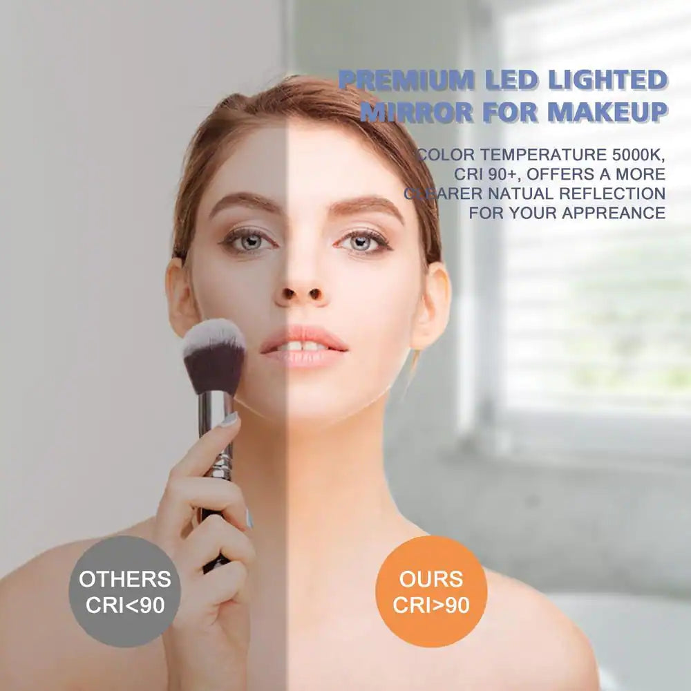- Accurately reflection: true 90 plus CRI and high lumen light offers perfect reflection for your daily routine. It's designed to meet daily makeup or shaving needs, your eyes won't get hurt even focusing on makeup or dressing for a long time, (it is not designed as a lighting light to light up the whole bathroom)