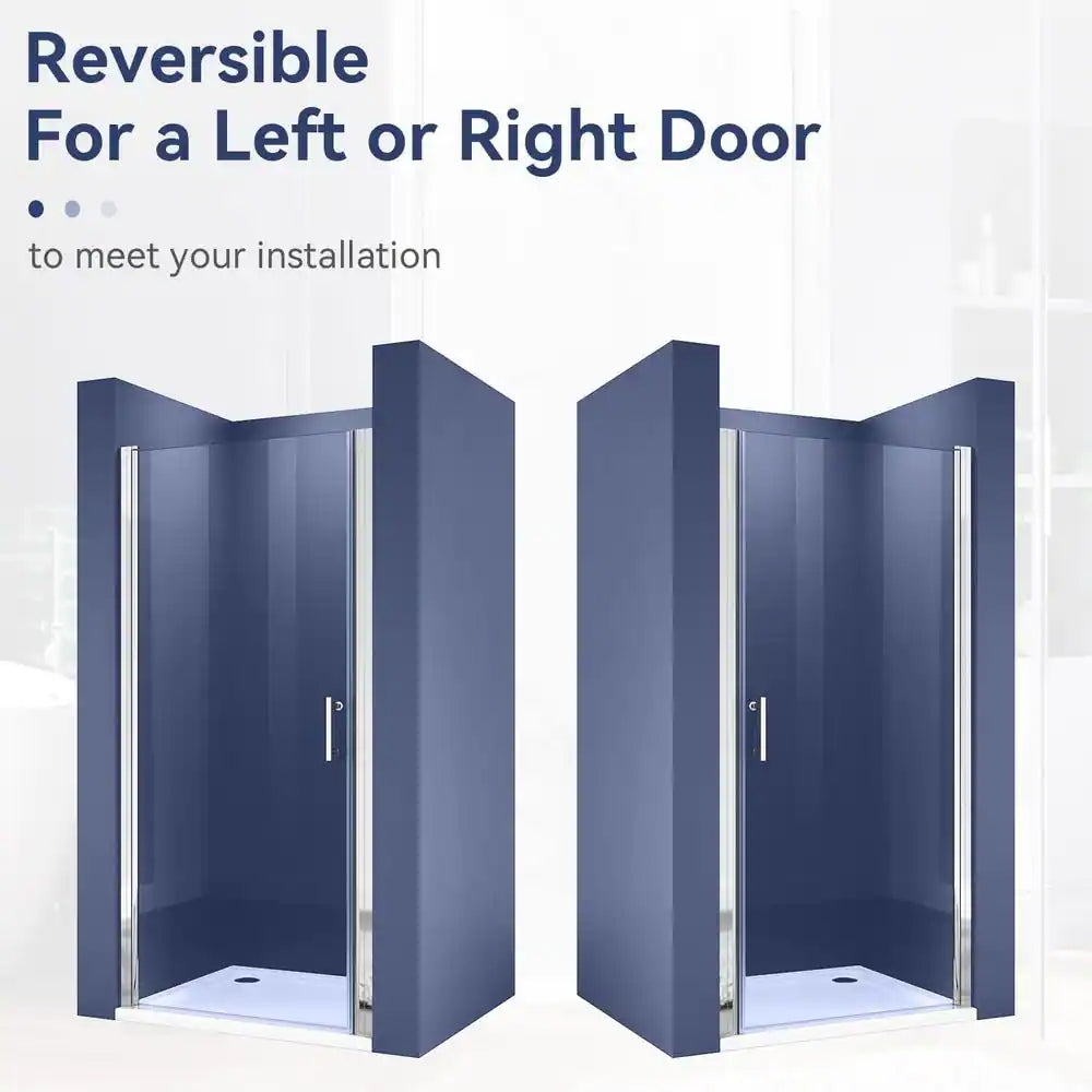 Pivot shower screen allows for a wide entry, while using less space. Great choice for smaller bathroom where a sliding door will not work. Reversible for a right or left wall installation to fit your specific layout.