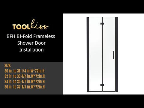 - Bi-fold glass shower doors: 34 in. - 35.5 in. W x 72 in. H, 6/25 in. (6 mm) thick clear SGCC certified tempered glass, hardware type: chrome finish.