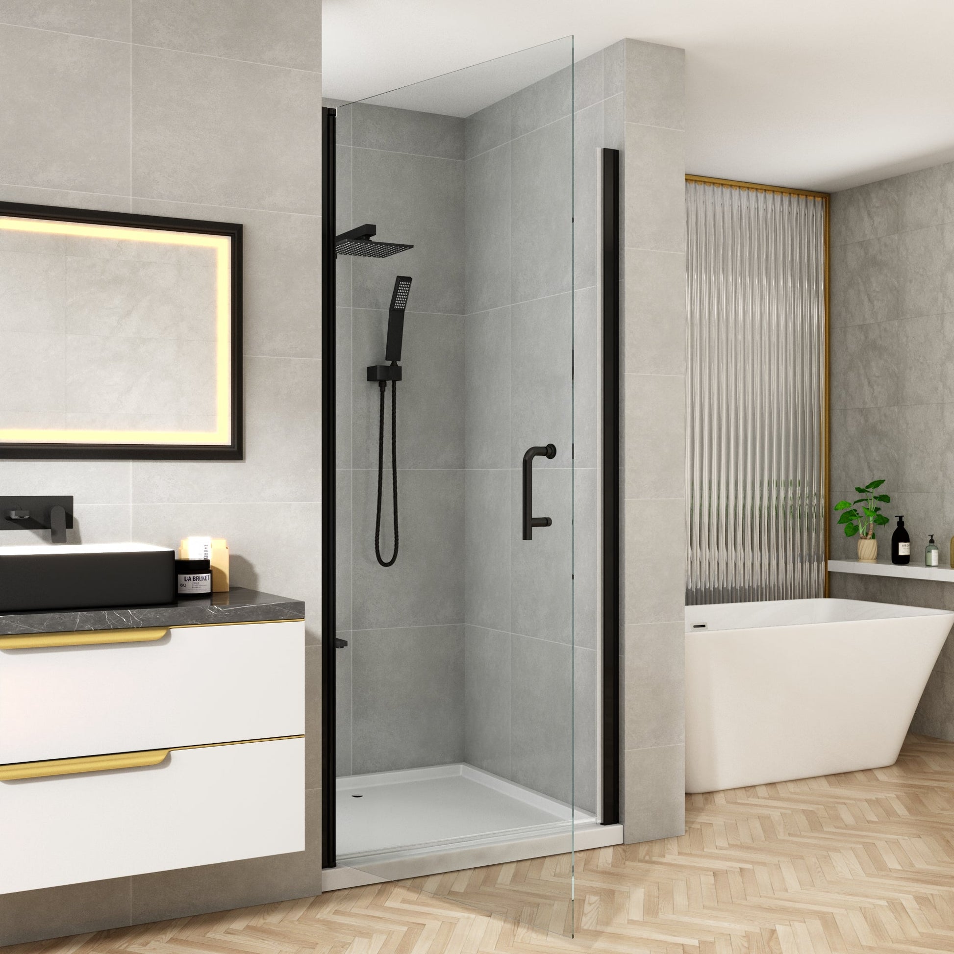 34-35 1/2'' in. W x 72 in. H Pivot Swing Minimalist Frameless Shower Door Matte Black Clear Glass