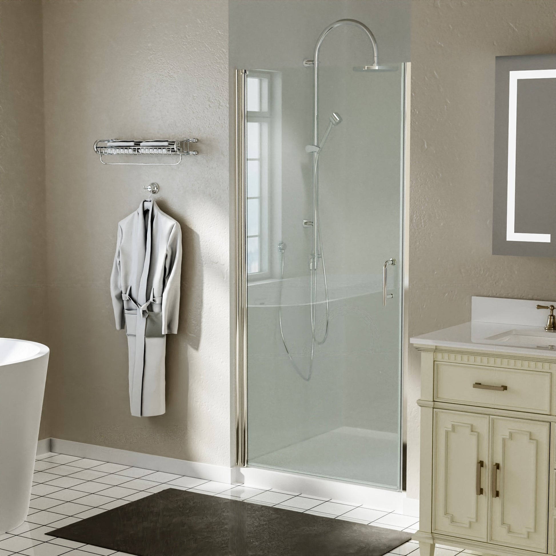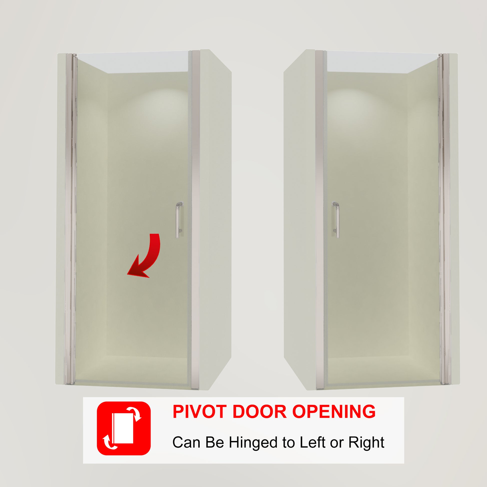 Pivot shower screen allows for a wide entry, while using less space. Great choice for smaller bathroom where a sliding door will not work. Reversible for a right or left wall installation to fit your specific layout.