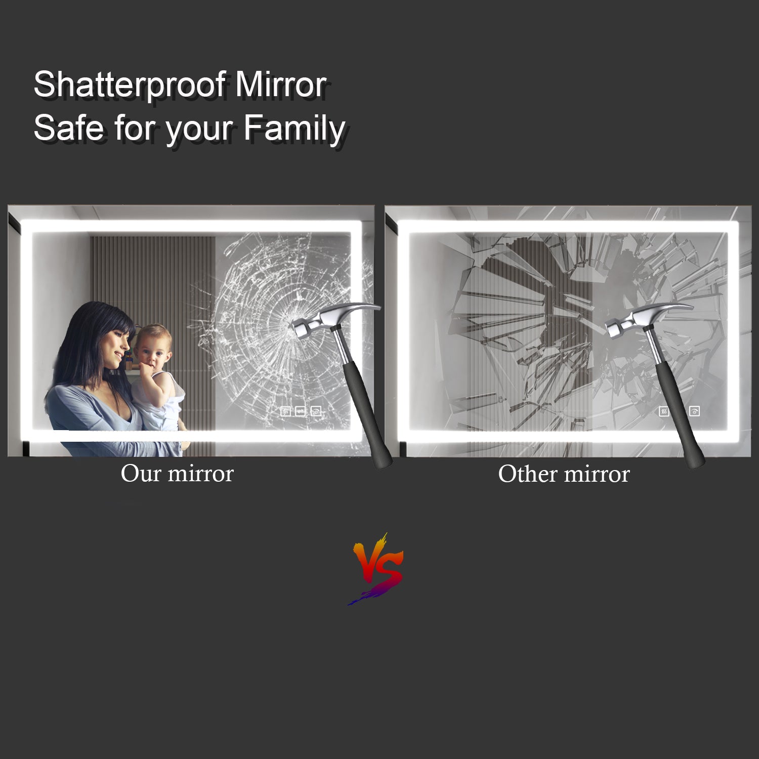 LED bathroom mirrors break down the traditional mirror design, adding led strip to make the decoration more advanced and versatile, extra light and defogger function to help with grooming and makeup. (This LED light can not to be primary lighting).