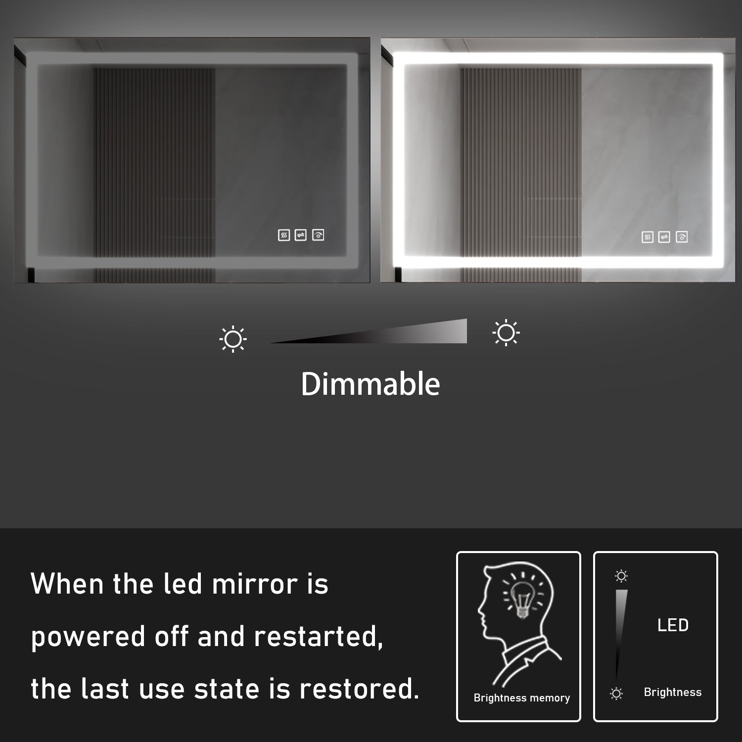 36 in. W x 28 in. H LED Rectangular Frameless Anti-Fog Wall Bathroom Mirror Front Light