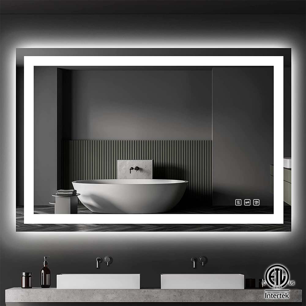 Illuminated LED wall mirror add contemporary style and soft lighting to the room. This mirror comes with rectangular LED lights that illuminate your room, your face and your smile. Minimalist-designed touch switches that make you glow at the touch of your fingertips. An innovative defogger pad behind the mirror prevents condensation, perfect for shared or windowless bathrooms.