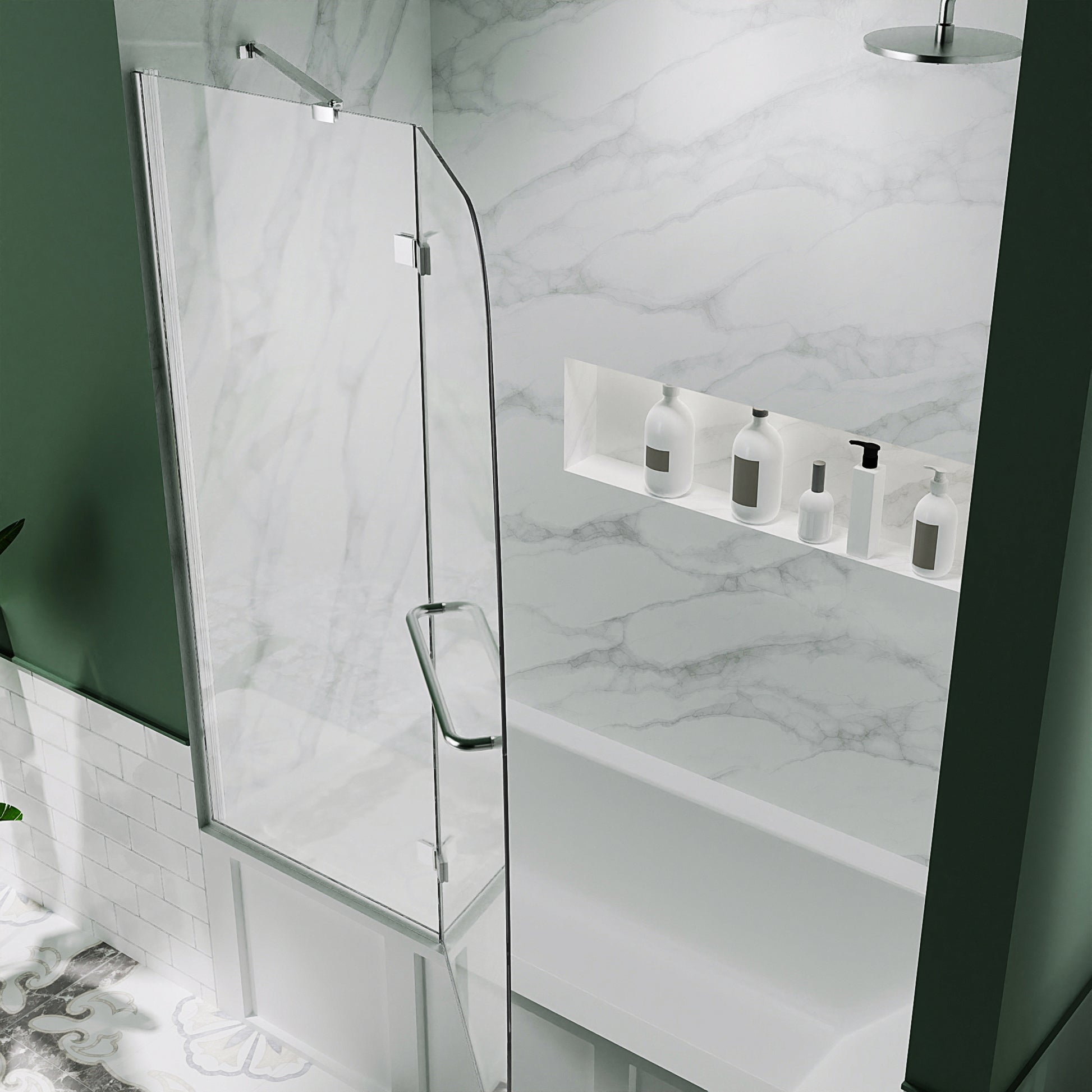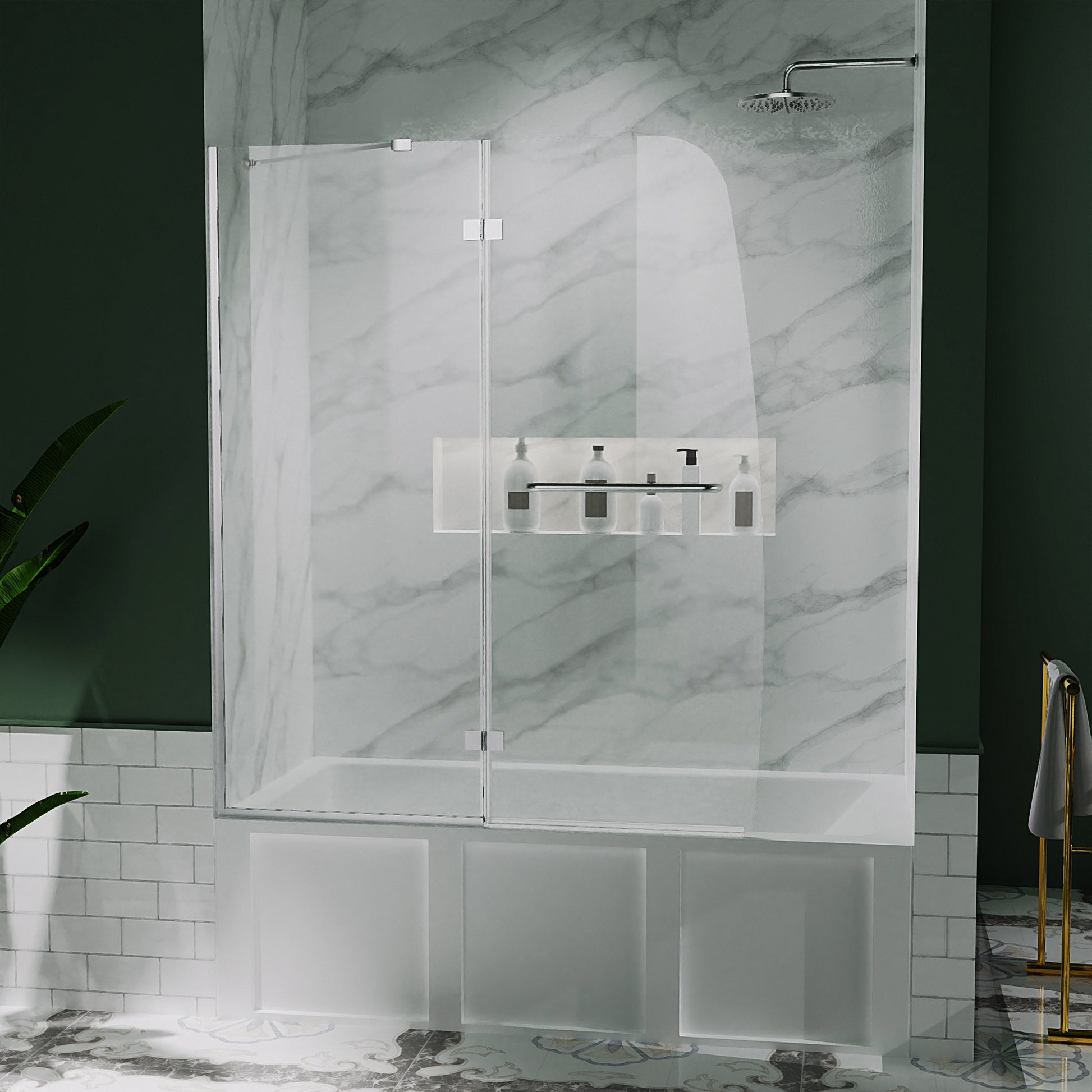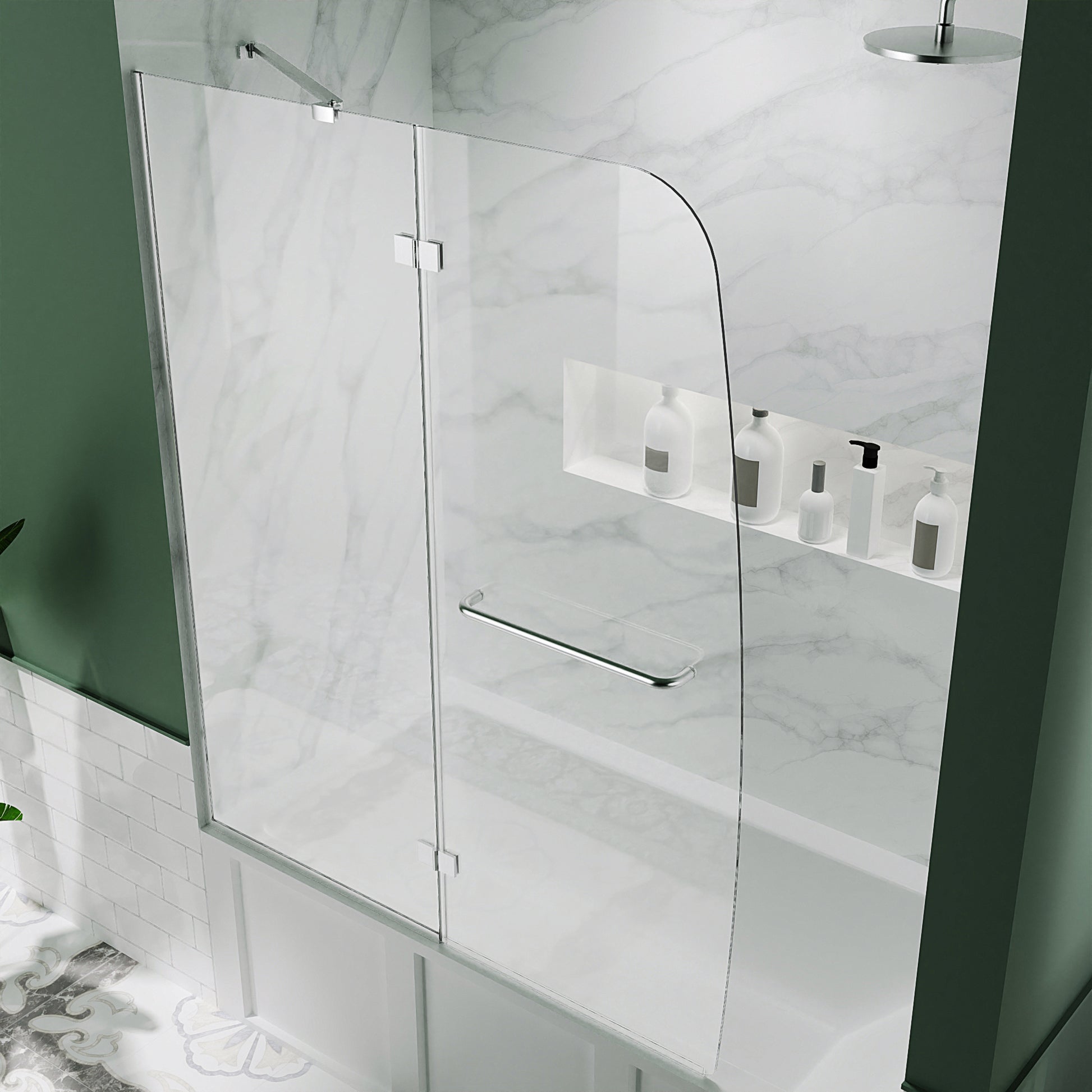 - Frameless bathtub shower door: 47.75 in. W x H 58 in.