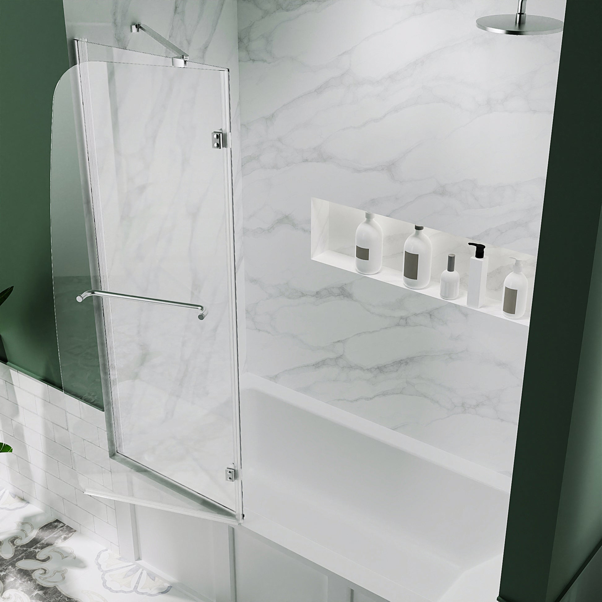 - Versatile design of pivoting swinging tub door that can be installed in reverse on the right or left wall to fit your specific layout; convenient towel bar handle.