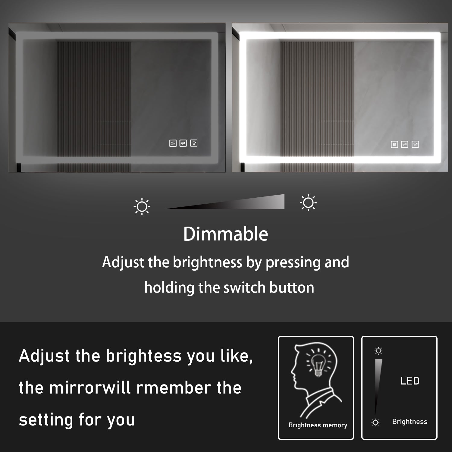 48 in. W x 36 in. H LED Rectangular Frameless Anti-Fog Bathroom Mirror Front Light