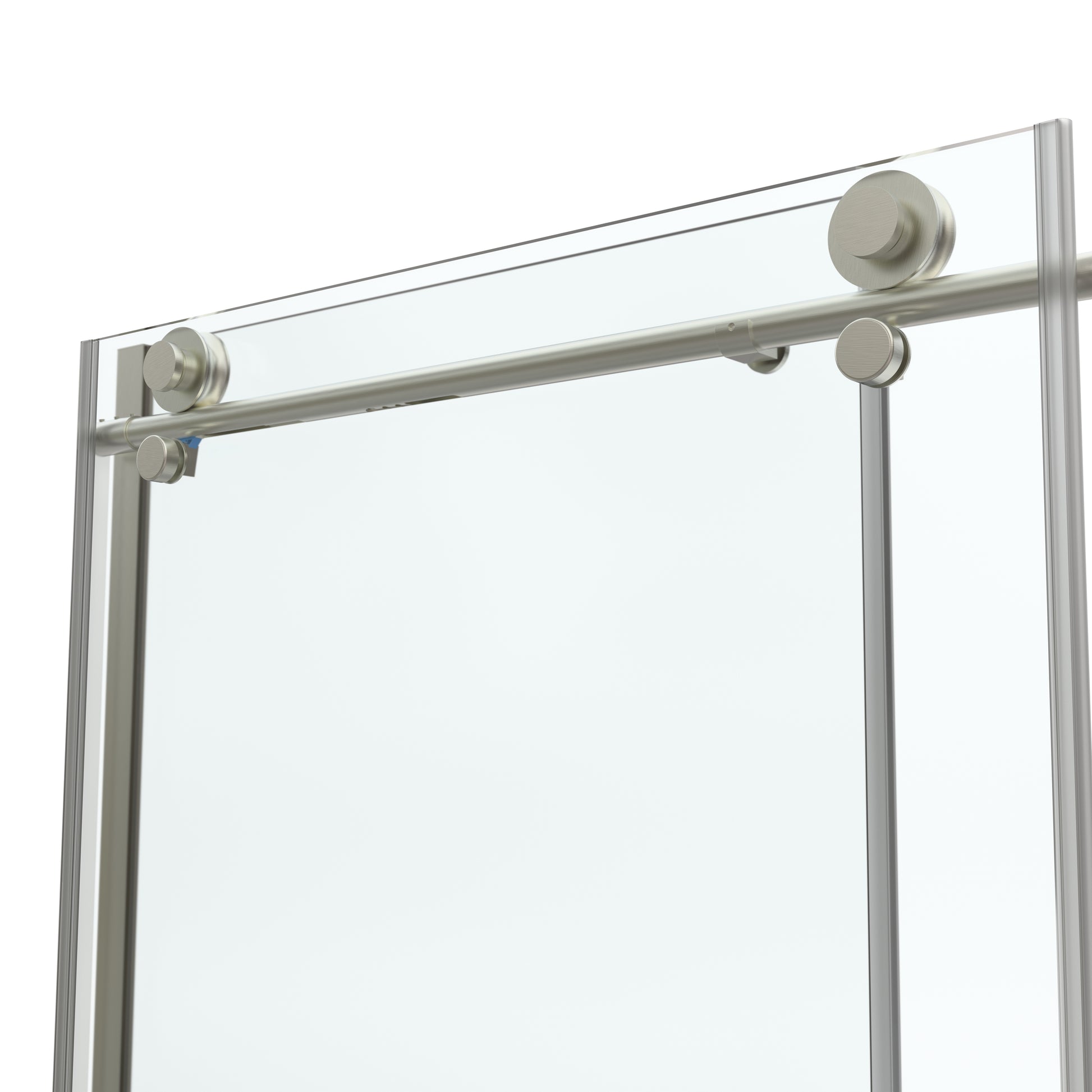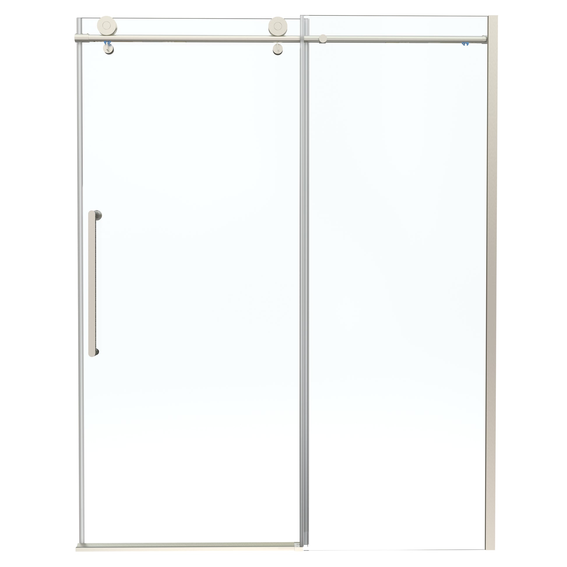 57-60 in. W x 76 in. H Sliding Semi-Frameless Shower Door Brushed Nickel Clear Glass