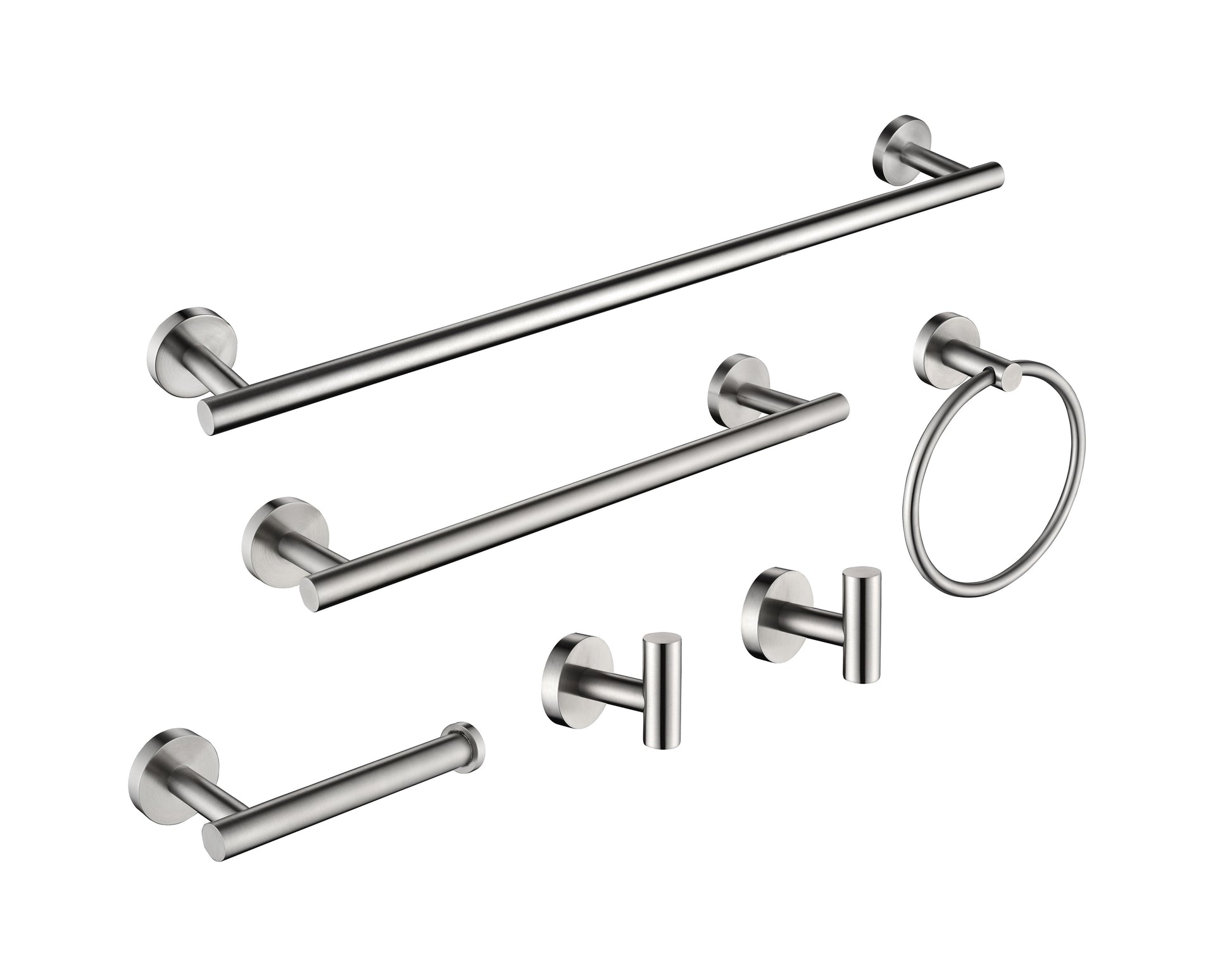 6-Piece Bath Hardware Set, Towel Bar, Toilet Paper Holder, Towel Hook in Brushed Nickel
