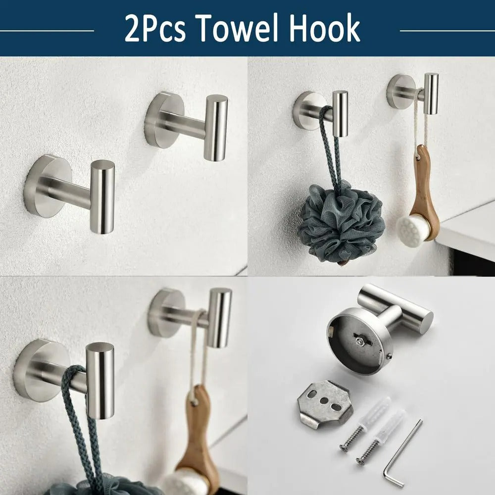 Complete 6-piece set - the bathroom hardware set includes towel bar, toilet paper holder, 2-multi-purpose hooks, 1-towel ring, this perfect towel bar set combination meets all your needs in daily life