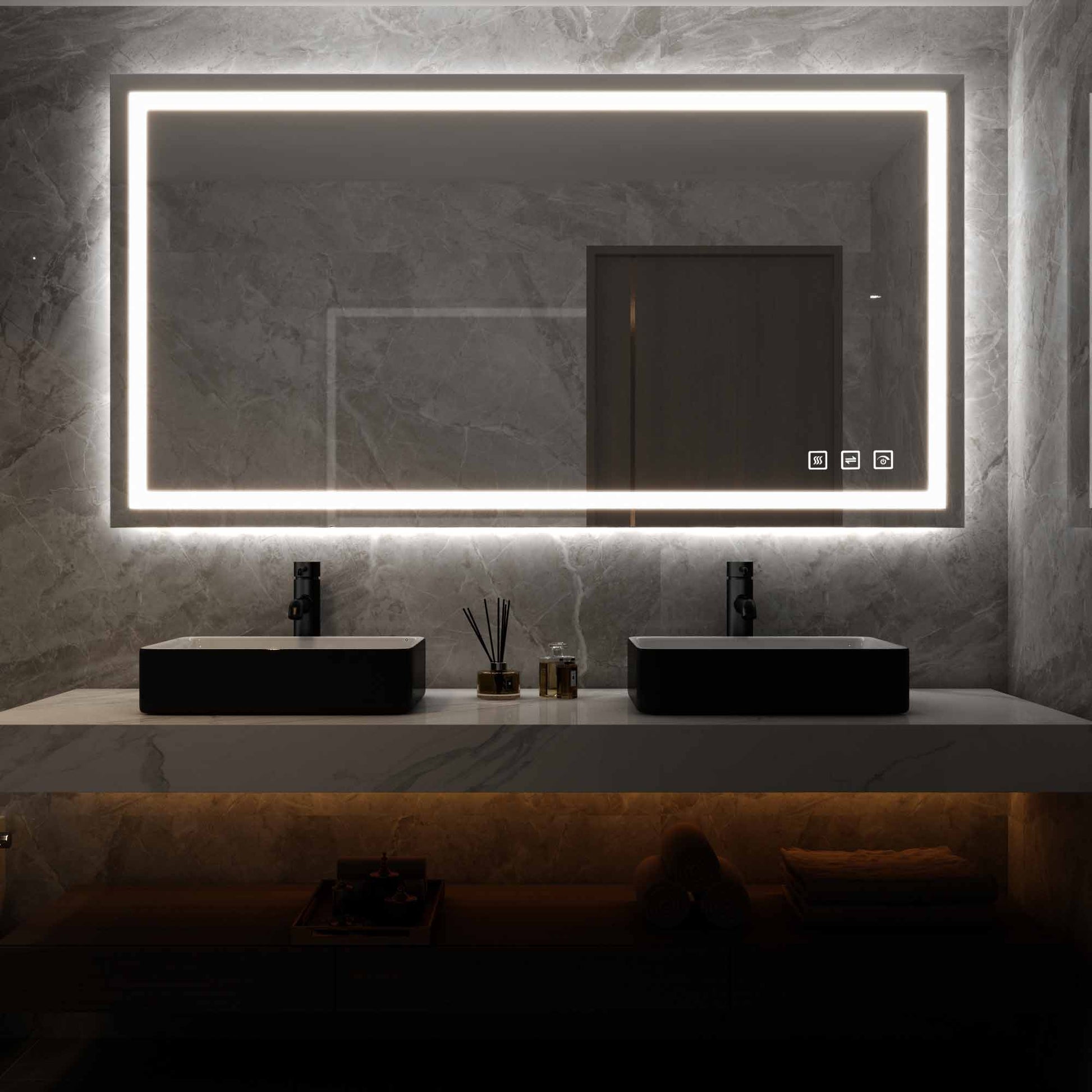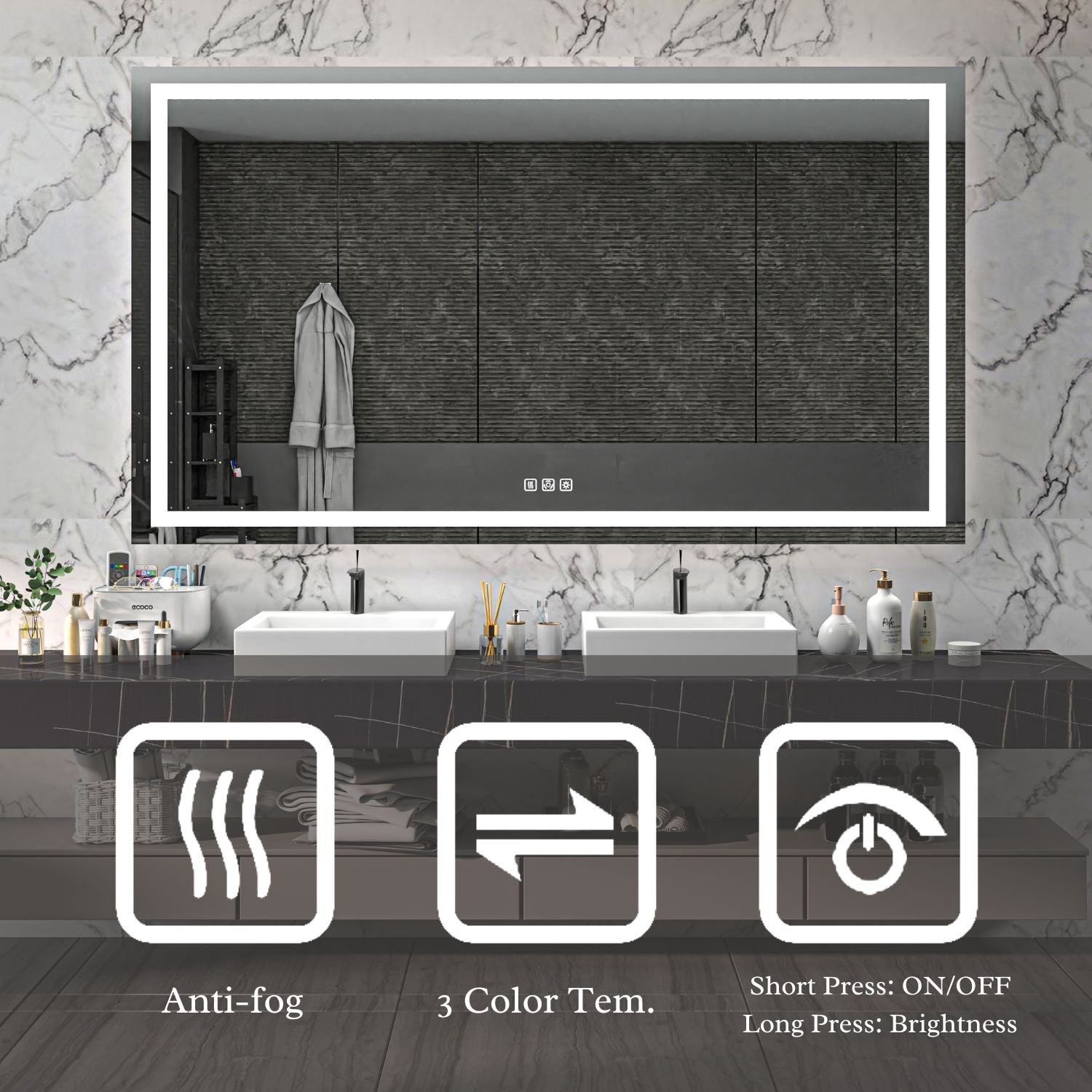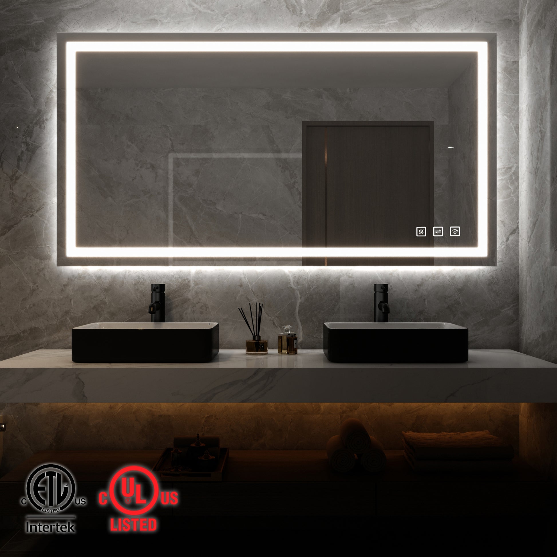 60 in. W x 36 in. H LED Rectangular Frameless Anti-Fog Bathroom Mirror Front Light