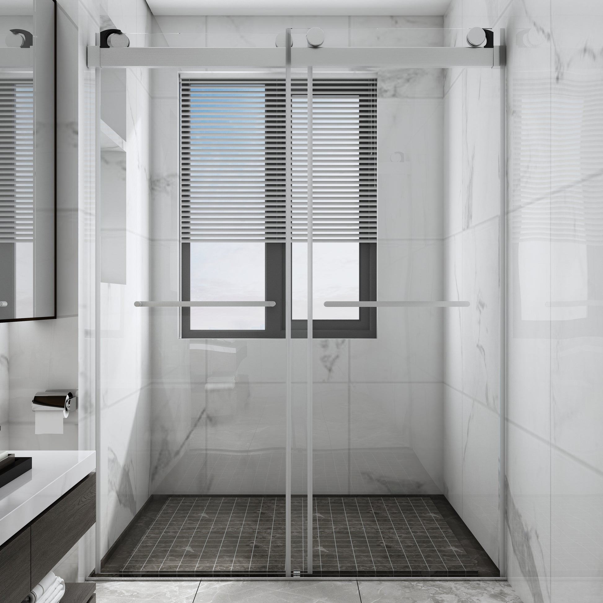 60 in. W x 76 in. H Sliding Frameless Shower Door Brushed Nickel Clear Glass