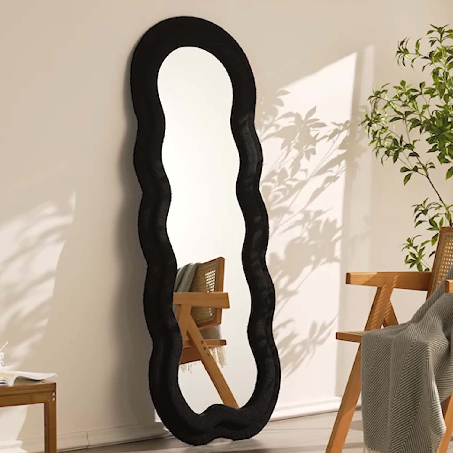 Transform your living room, bedroom, hallway, or dressing room with this wavy full-length floor mirror, adding an artsy and stylish touch to your interior. Crafted from high-quality glass, the wavy mirror is encased in a luxurious frame, available in your choice of velvety white or pink. Select your preferred option and make a statement with this unique and trendy mirror.
