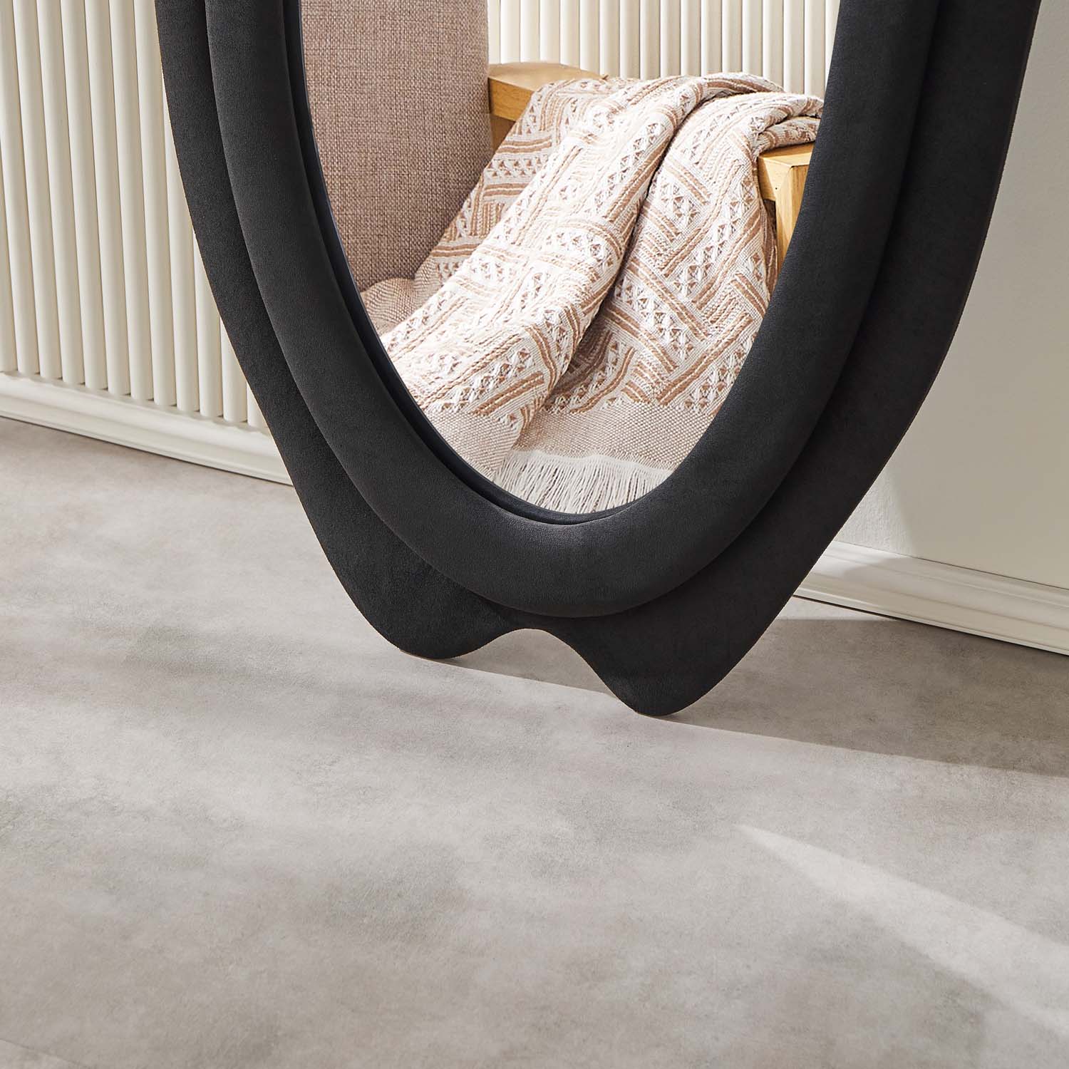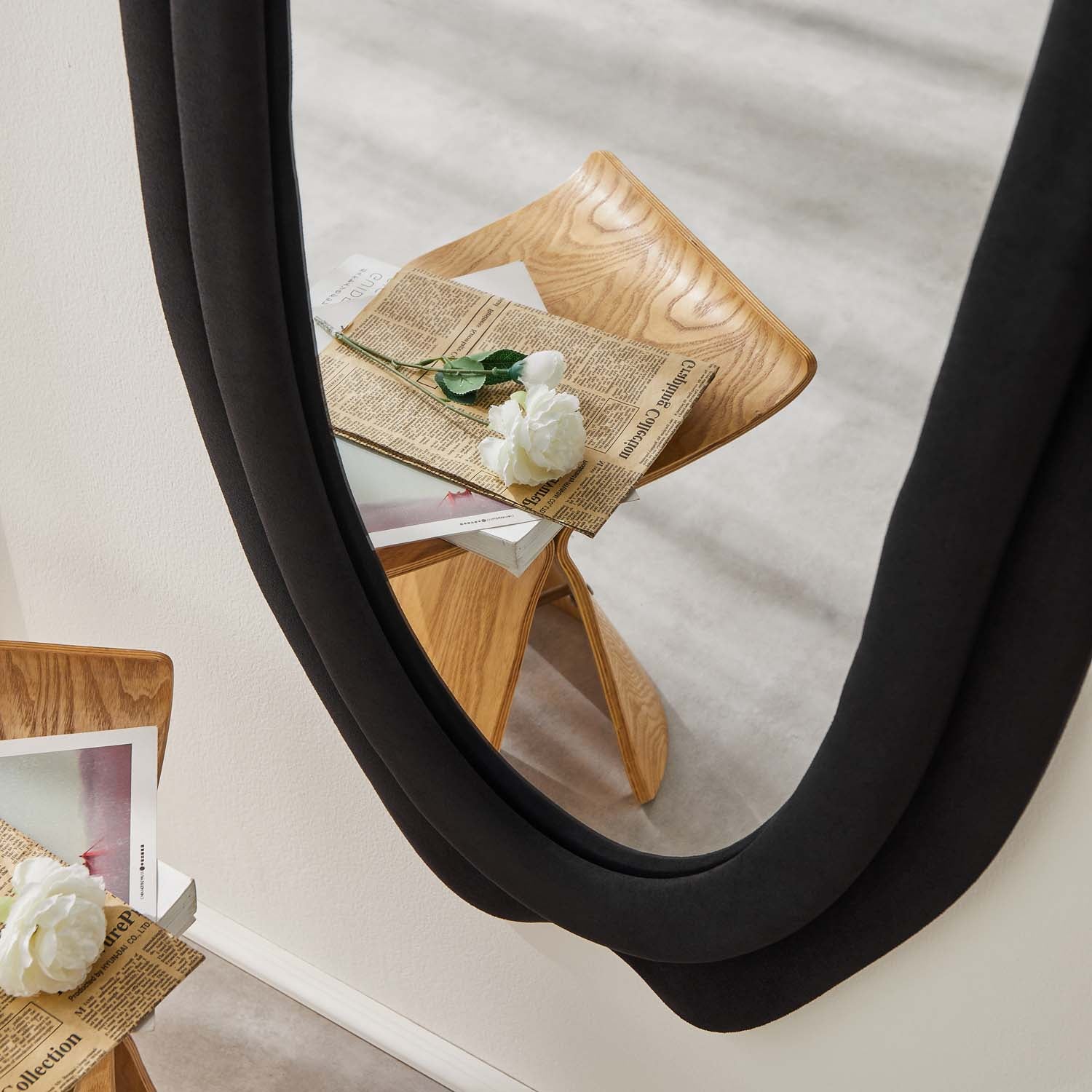 Full Length Irregular Mirror 63 in x 24 in with Flannelette Fabric Frame Black
