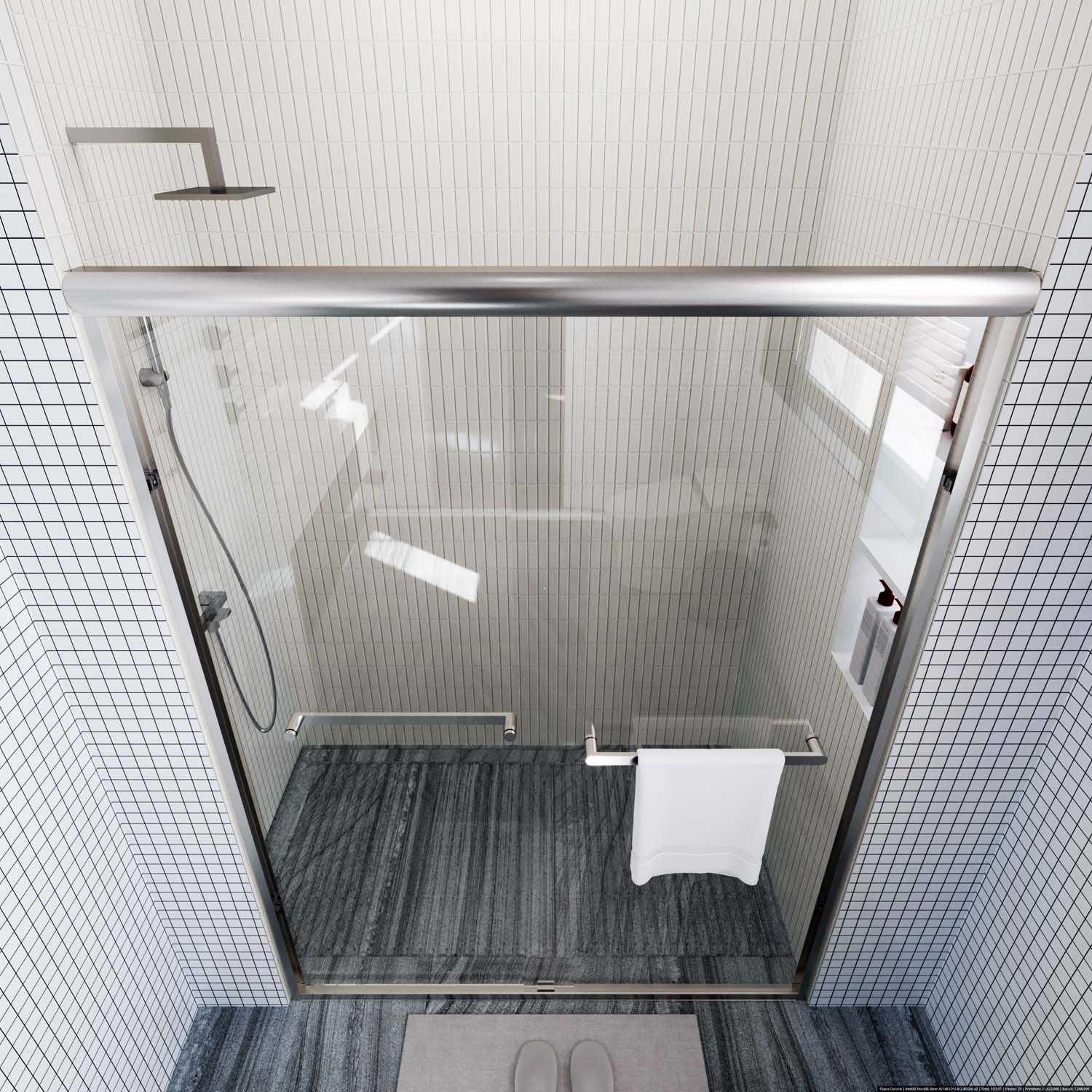 Toolkiss 50’’ to 54’’W x72’’H Semi Frameless Sliding Shower Door, Double Sliding, Brushed Nickel