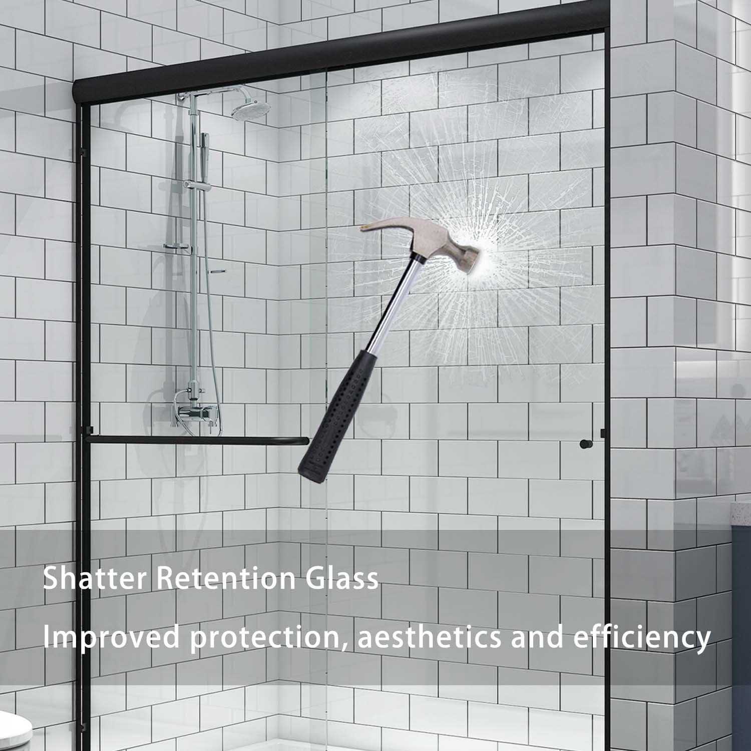 - The glass panel is coated with a protective layer, forming a barrier against water and preserving the new appearance of your shower door.