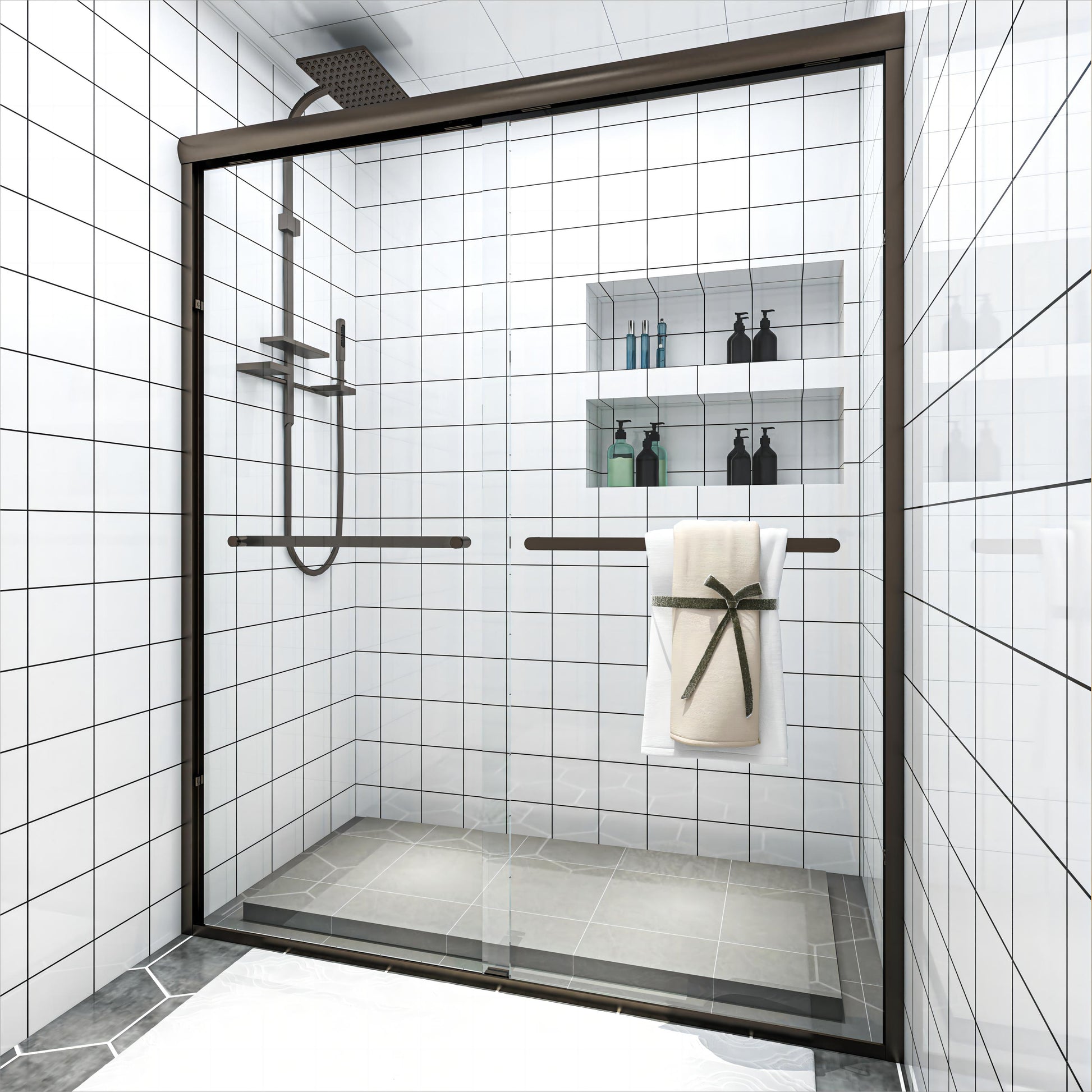 TOOLKISS Sliding Framed Shower Door wtih Double Towel Bars Customization(TK19118)